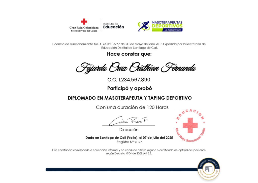 ¿Sabías que ahora puedes certificarte como Masoterapeuta Deportivo con el respaldo oficial del Instituto de Educación Cruz Roja Valle?
